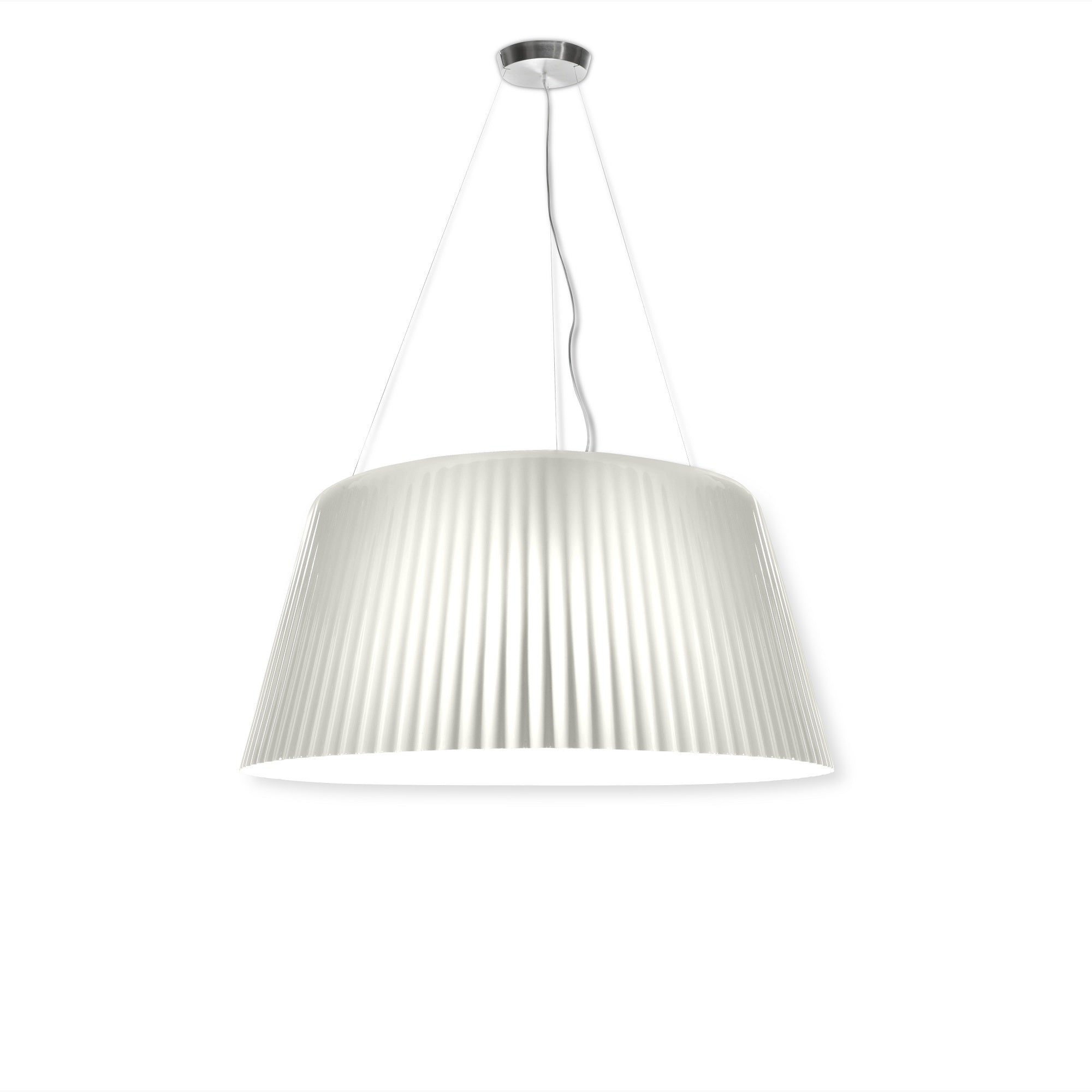 The Lampa-Daria Hanging Lamp, designed by Luisa Bocchietto for Serralunga, is a large suspension lamp. The outer shade features a wavy outline inspired with irony on the classic fabric chandelier, reinvented in low-density linear polyethylene created using rotational moulding.